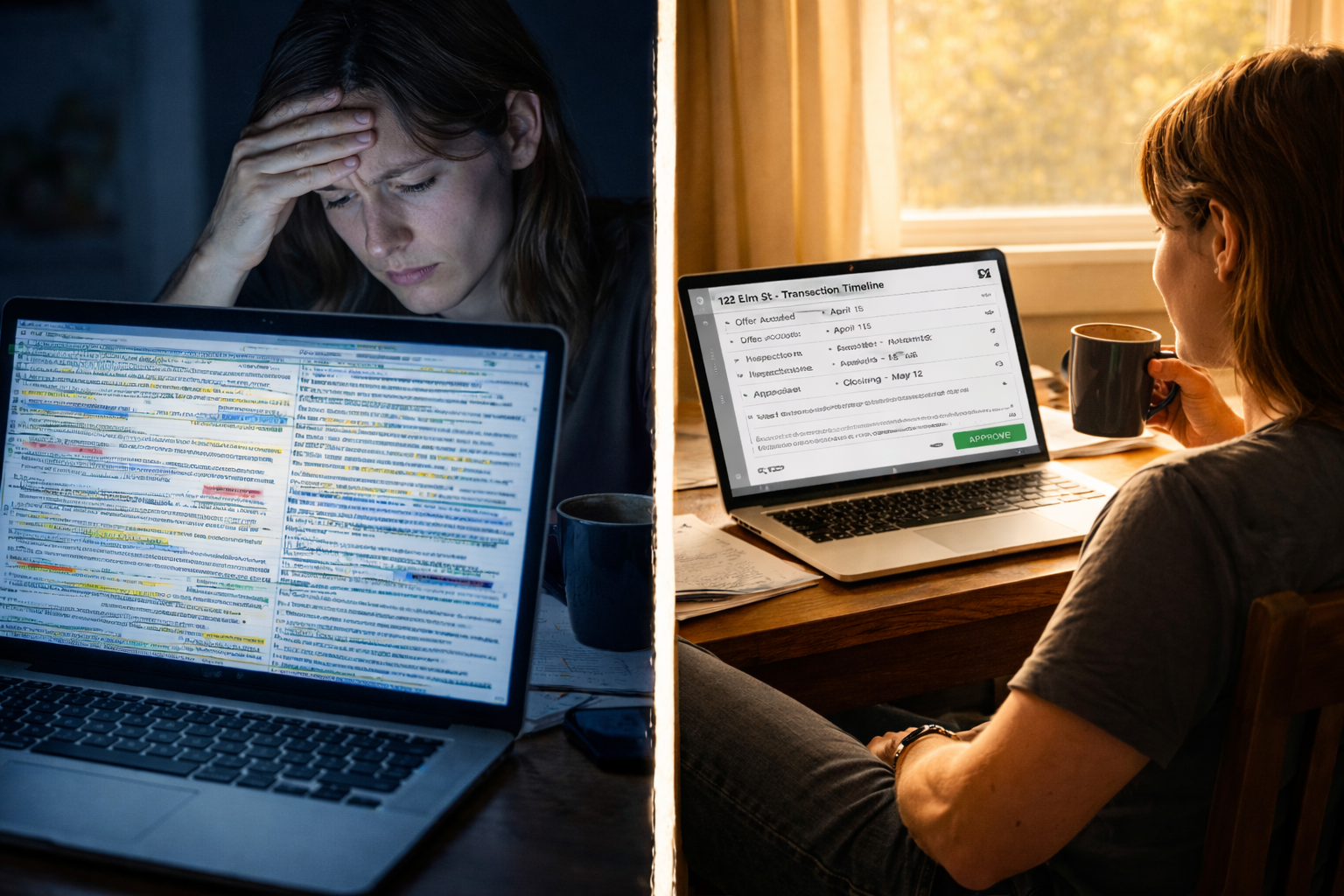 You open the transaction. You see everything laid out. You scan the timeline — looks right. You check the drafted email — tweak one sentence. You glance at the flags — the short contingency period is intentional, you already knew about it. You approve.